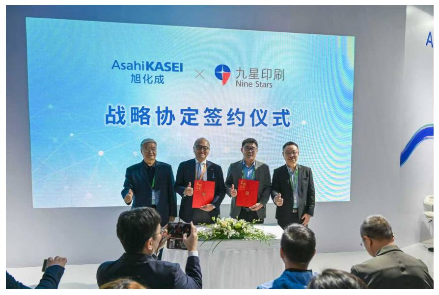 11月7日,第四次亮相中國國際進口博覽會(以下簡稱“進博會”)的旭化成集團(以下簡稱“旭化成”),在其展臺舉辦了一場主題為“賦能多元材料、共創新質生產力”的柔版印刷研討會。會上,旭化成重磅發布了與北京印刷學院合作的最新“印刷產品碳足跡”研究成果,并正式宣布與深圳九星印刷包裝集團有限公司(以下簡稱“九星印刷”)啟動“藥用復合膜柔印項目”,標志著其在華綠色發展戰略邁入務實合作新階段。