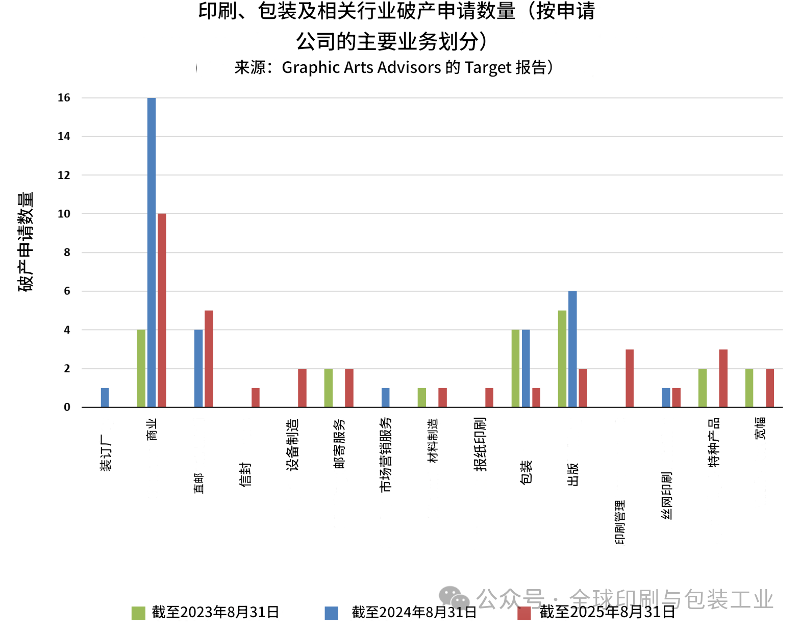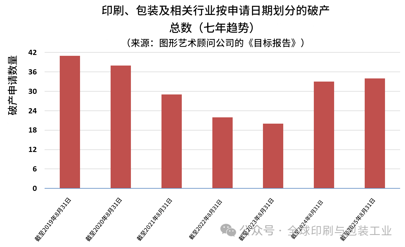 商業(yè)印刷在破產數(shù)上再次居于首位;其中5起來自直郵。但年度最受關注破產無疑是瀾達數(shù)字印刷公司。該公司全球裝機50d多臺、單機約350萬美元,累計消耗投資超13億美元后申請破產。對已裝機用戶而言,尋找買家接盤并持續(xù)供保是當務之急。最新公告顯示已完成出售交易。