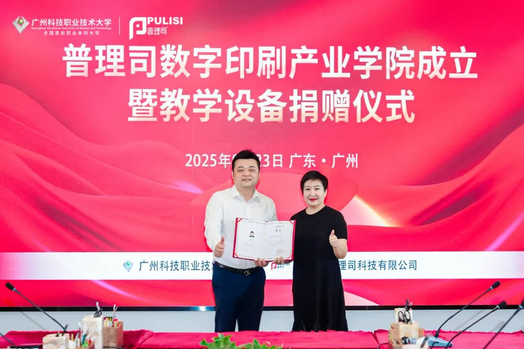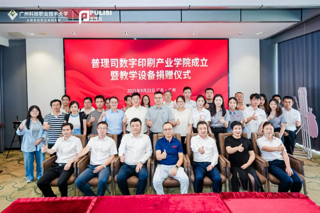 至此,普理司數(shù)字印刷產(chǎn)業(yè)學(xué)院成立暨教學(xué)設(shè)備捐贈(zèng)儀式&數(shù)字印刷技術(shù)產(chǎn)學(xué)研協(xié)同創(chuàng)新論壇圓滿舉辦。這標(biāo)志著廣州市普理司科技有限公司與廣州科技職業(yè)大學(xué)的戰(zhàn)略合作邁上新臺(tái)階,是雙方可持續(xù)深化“教育鏈、人才鏈、產(chǎn)業(yè)鏈、創(chuàng)新鏈”融合的重要里程碑。未來,雙方將充分整合優(yōu)質(zhì)資源,打造“人才培養(yǎng)、技術(shù)創(chuàng)新、社會(huì)服務(wù)”三位一體的產(chǎn)教融合平臺(tái),為數(shù)字印刷產(chǎn)業(yè)突破人才供給瓶頸注入強(qiáng)勁動(dòng)力。