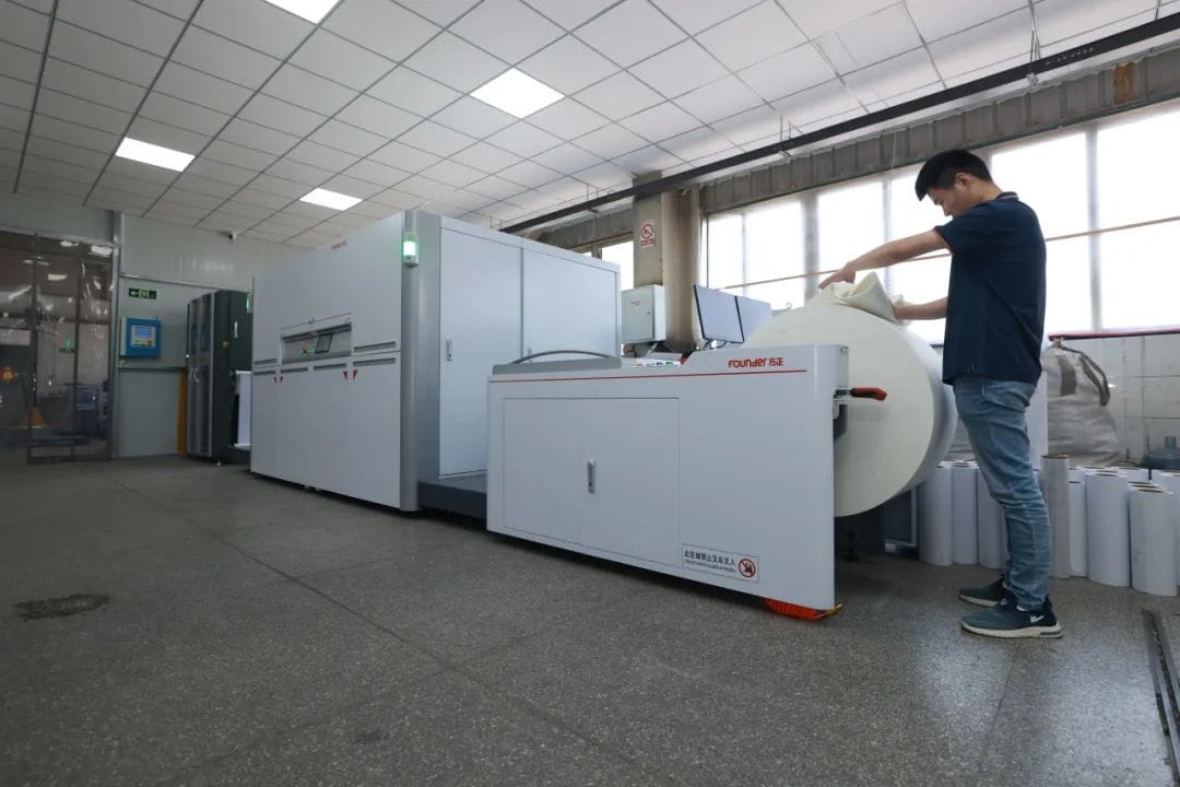 最開始,青島華泰興會租賃別家印廠購買的方正600dpi黑白機處理客戶訂單。疫情結束后,公司訂單量暴增,彩色訂單也越來越多,時佰峰意識到,“這對印刷品質、印刷效率的要求很高、挑戰也很大,從長遠考慮,還是必須購入高端、先進的設備才能解決問題。”于是,2023年,在資金條件成熟的情況下,他購入一臺方正桀鷹P4400CHD高清彩色噴墨輪轉機對公司進行生產能力升級。這是山東省落地的第一臺方正噴墨設備,一下就吸引了當地同行的關注,“很興奮,這下大家伙都開始知道有青島華泰興這個公司了。”