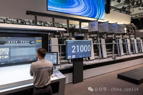 海德堡以“無限潛能,盡情釋放”為主題,展示眾多創新成果,以應對行業變化和趨勢。其重點推出了新一代速霸XL 106-8-P。速度達21000張/小時,使工業膠印更具競爭力;搭載了AI支持的輔助系統和增強的“P2S一觸而就”功能,可以大幅提升生產效率;配備有全自動Plate to Unit印版輸送裝置;支持集群生產,一名操作人員可以同時操作多臺設備。