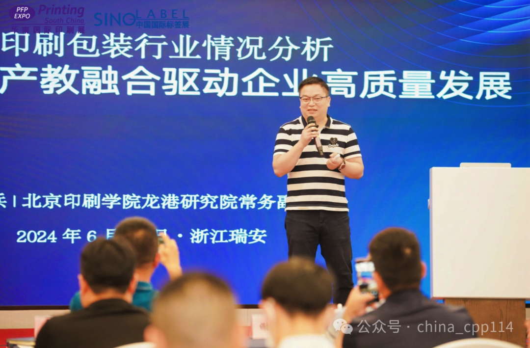作為最后一位演講嘉賓,北京印刷學(xué)院龍港研究院院長(zhǎng)呂勇兵先生現(xiàn)場(chǎng)發(fā)表主題演講——《2024年印刷包裝行業(yè)情況分析/產(chǎn)教融合驅(qū)動(dòng)企業(yè)高質(zhì)量發(fā)展》。