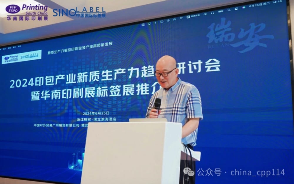 2024年6月25日,由中國(guó)對(duì)外貿(mào)易廣州展覽有限公司、雅式展覽服務(wù)(深圳)有限公司、上海印搜文化傳媒股份有限公司聯(lián)合主辦的“2024印包產(chǎn)業(yè)新質(zhì)生產(chǎn)力趨勢(shì)研討會(huì)暨華南印刷展標(biāo)簽展推介會(huì)”,在溫州瑞安瑞立濱海酒店順利召開。來自江浙滬地區(qū)近50位嘉賓參會(huì)。