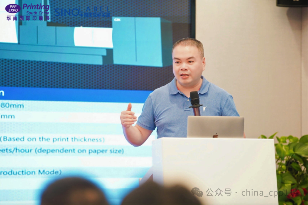 浙江煒岡科技股份有限公司銷售經(jīng)理朱清先生發(fā)表精彩演講,他演講的主題是——《工業(yè)5.0時(shí)代,智能制造如何賦能行業(yè)發(fā)展》。據(jù)了解,煒岡科技剛剛從德魯巴印刷展歸來,其數(shù)碼印刷機(jī)全系列亮相德魯巴,現(xiàn)場(chǎng)人氣爆滿。