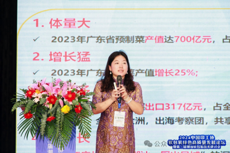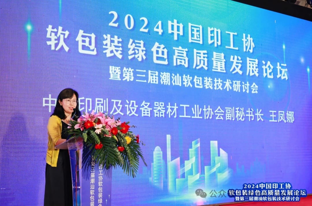 中國印刷及設備器材工業(yè)協會副秘書長王鳳娜亦發(fā)表致辭。王鳳娜表示:“潮州一直被稱之為美食之都,本次活動得到了行業(yè)各個單位的大力支持,旨在探討行業(yè)高質量發(fā)展之路,不僅承載著期待與使命,更有融合共生的責任。面對全球產業(yè)鏈深度調整,以及環(huán)保法規(guī)愈加嚴格、消費者需求多元化等挑戰(zhàn),高質量發(fā)展是企業(yè)的必然選擇也是行業(yè)的必然趨勢。2024年是新中國成立的75周年,是實現“十四五”規(guī)劃目標任務的關鍵一年,也是軟包裝行業(yè)邁向高質量發(fā)展的新節(jié)點,希望大家能借助這一高端對話平臺,實現產業(yè)鏈協同發(fā)展,把握新機會,共繪新藍圖。最后,預祝大會圓滿成功。”