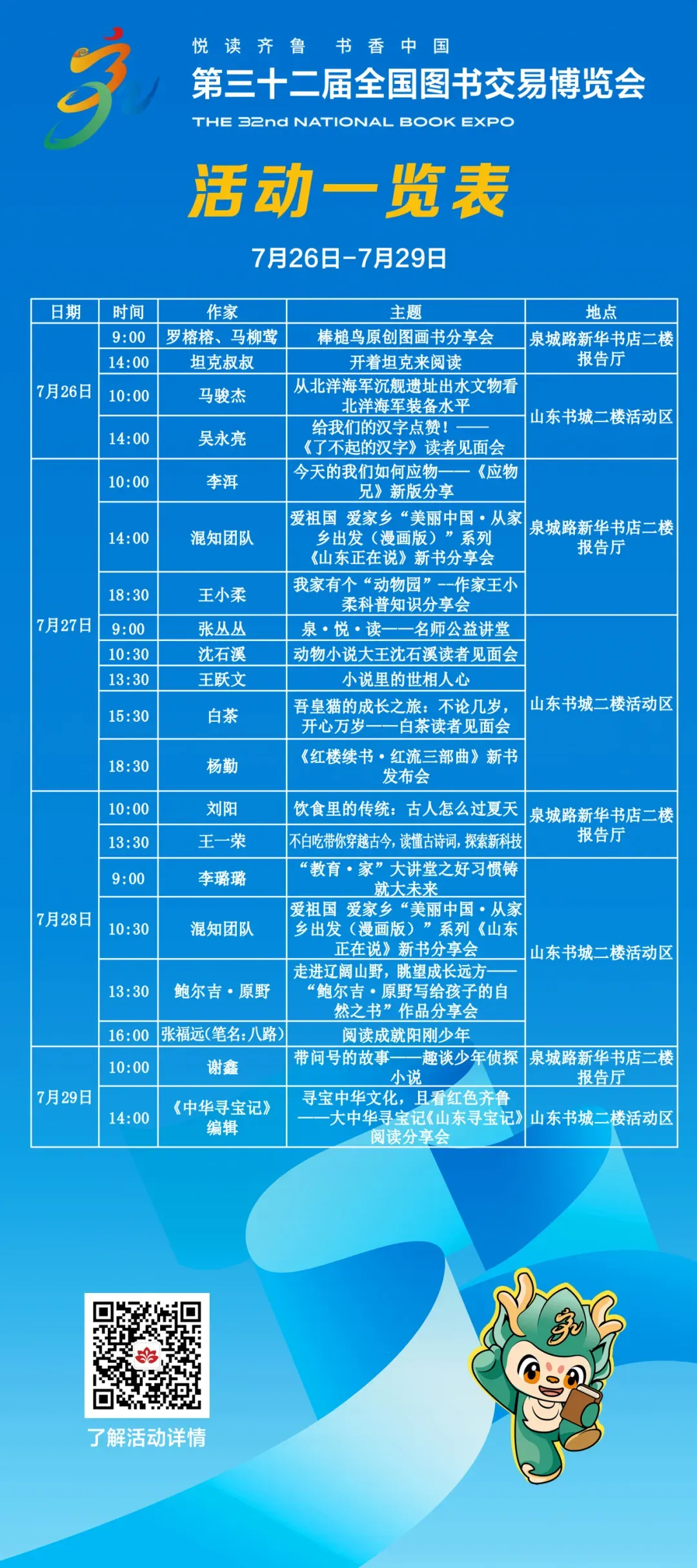泉城路新華書店和山東書城作為書博會(huì)專場(chǎng),邀請(qǐng)王躍文、李洱、沈石溪、白茶、吳永亮、混知團(tuán)隊(duì)、張福遠(yuǎn)(筆名:八路)等眾多名家、學(xué)者、編輯,開展豐富多彩的文化活動(dòng),打造書博會(huì)盛宴。