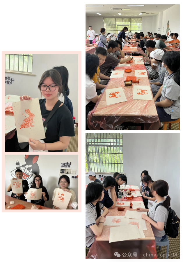 參觀完畢后,在工作人員引領下,團隊成員前往博物館一樓雕版活字印刷體驗專區進行實地體驗。體驗專區的雕版是各式各樣的生肖,經過工作人員的講解后,團隊成員們都對親身體驗雕版印刷躍躍欲試。